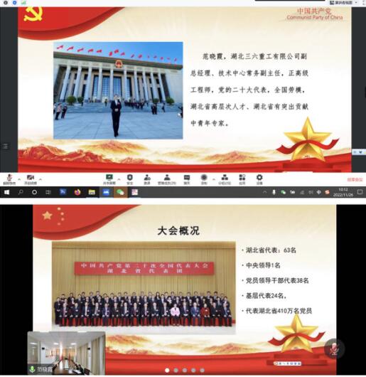 会议有幸邀请到中共二十大代表、湖北三六重工有限公司副总经理范晓霞宣讲二十大盛况和传达二十大精神,为全体参会人员作了题为《以科技创新助推企业高质量发展》的报告,从过去五年的工作和新时代十年的伟大变革、开辟马克思主义中国化时代化新境界、实施科教兴国战略、坚定不移全面从严治党等十五个方面进行了报告。为成立大会讲了一堂生动的党课。