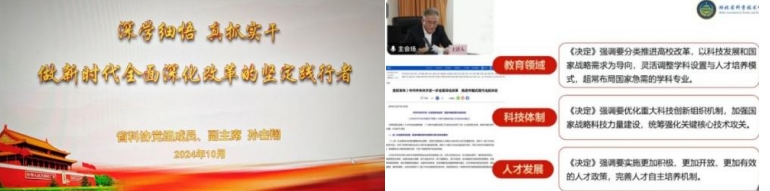 黄石市委党校党史党建教研室主任陈敬乐给党员同志们作《培养拔尖创新人才 推进科技自立自强——学习贯彻党的二十届三中全会精神》的党课。党课围绕深刻领会二十届三中全会的背景与意义、准确把握全会精神的重要部署,科技创新、肩负使命,勇于奉献,敢于担当,党的二十届三中全会精神的重大意义。将全会精神与实际工作深度融合,在实现中国式现代化道路上,为祖国繁荣昌盛贡献新的力量。