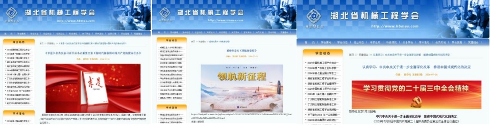为庆祝建党103周年,党支部在学会网站党建强会专栏转发《求是》杂志第13期发表的文章《新时代新征程中国共产党的使命任务》,要求党员会员认真学习。贯彻落实党的二十届三中全会精神,转发新华社纪录片《领航新征程》、新华社“中共中央关于进一步全面深化改革 推进中国式现代化的决定”。