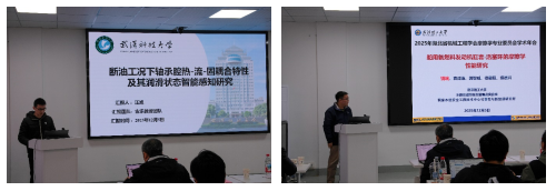 下半场由三峡大学徐翔教授主持,湖北大学杨付超,三峡大学曾元明,武汉科技大学汪旭,武汉理工大学饶响分别做了题为“乳化润滑油的摩擦学性能演化及仿生油水分离研究”“基于固液摩擦行为构建功能性传感器的应用研究”“断油工况下轴承腔热-流-固耦合特性及其润滑状态智能感知研究”“船用氨燃料发动机缸套-活塞环的摩擦学性能研究”的学术报告,参会人员针对报告内容展开了深入的交流与探讨。