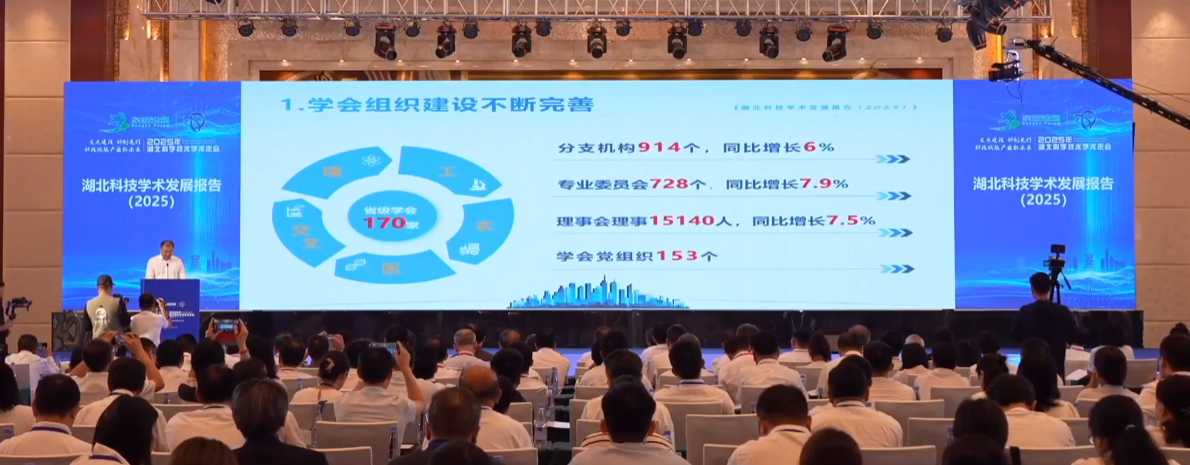 2025年9月14日,由省科协主办、以“支点建设 科创先行:科技赋能产业新未来”为主题的2025年湖北省科学技术学术年会开幕式暨主论坛在武汉召开。开幕式上发布了《湖北科技学术发展报告(2025)》《湖北省科技工作者状况调查报告(2025)——湖北省企业科技工作者发展情况》。