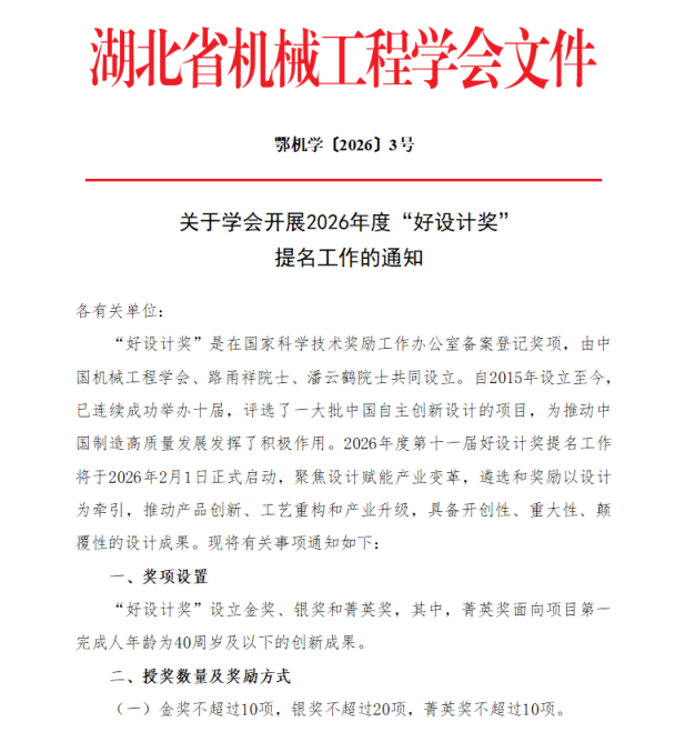 >> 关于学会开展2026年度“好设计奖”提名工作的通知