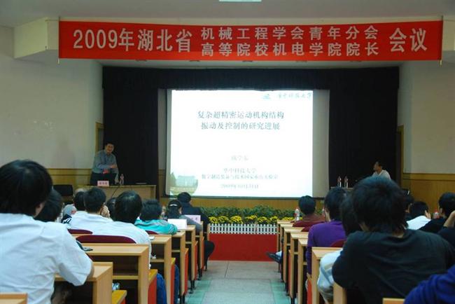 由湖北省机械工程学会青年分会主办,武汉工业学院承办的“湖北省机械工程学会青年分会2009年年会暨第五届湖北省高校机电工程学院(系)院长(主任)会议”于2009年10月30日至11月1日在武汉工业学院隆重举行,本次会议的主题是:高校机械工程专业学科建设与科技创新。10月31日上午举行了大会开幕式,出席开幕式的领导和来宾有湖北省机械工程学会秘书长陈万诚,华中科技大学机械学院副院长、湖北省机械工程学会青年分会理事长、楚天学者史铁林教授,武汉工业学院党委书记王祚桥教授,华中科技大学机械学院博导、长江学者陈学东教授,湖北工业大学机械工程学院院长、湖北省机械工程学会青年分会秘书长赵大兴教授,武汉工业学院机械工程学院院长张永林教授等。会议正式代表40余人,代表来自湖北省各高校、研究院所和出版社。参加开幕式和听取大会学术报告的工程技术人员、研究生、本科生近300人。会议以大会学术报告、专题学术报告、学术交流等形式进行。开幕式由张永林主持,陈万诚在大会致辞,史铁林同志致开幕词,王祚桥同志致欢迎词。