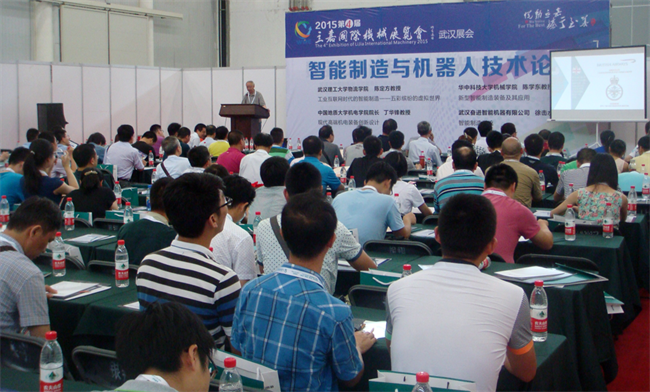 报告结束后与会代表参观了“2015第四届武汉国际机床展览会”。本次展会展位面积达2.5万平方米,450家参展厂商和600台套设备参展。展会突显了智能制造和机器人装备,体现了“互联网+机床”成发展趋势、“机器换人”必将成为潮流、“智能制造”深入人心,这些都与论坛的主题不谋而合。