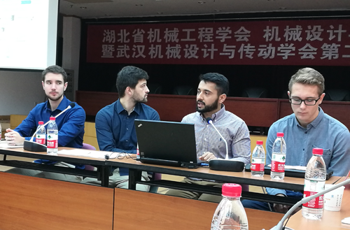 会议邀请4名江汉大学的德国研究生、武汉理工大学罗亚波教授、武汉工程大学陈汉新教授、南昌工程学院卢全国教授、武汉理工大学谭跃刚教授分别作了题为“Experimental and numerical determination of the aerodynamic quality of circular arc sheet blades with constant thickness and various edges”、 “智能—工业4.0的核心及难点”、“问诊式高清晰度和高灵敏度的超声无损检测新一代技术和方法研究”、“磁致伸缩式惯性冲击驱动器的研究与开发”、“超声激励—光纤光栅分布检测技术及其应用”的专题学术报告。每个报告做完后,报告人都与参会代表进行互动交流,就相关问题进行深入研究和探讨。