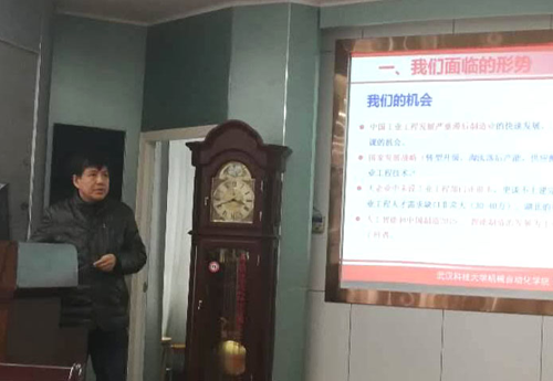 武汉科技大学陈奎生校长做了大会致辞,并指明专委会2018年的工作重点是如何让产学研结合落地,同时也为校企合作共赢明确了方向。由于武汉大雪,天气寒冷,路面全是积雪,全省9所设有工业工程的高校代表,以及益友会湖北分会代表都风雨无阻齐聚武汉科技大学,陈奎生副校长非常感谢与感动各位代表的参会。