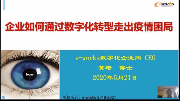 随后,e-works CEO黄培博士作报告:《企业如何通过数字化转型走出疫情困局》。黄培博士深入分析了国际疫情给中国制造业带来的“二次打击”,详细阐述了疫情带来的短期、中期、长期影响。他提出,中国制造业应更加专注于提升创新能力,把握核心技术,建立国际竞争力;制造企业应当加强与国内上下游企业的协作,实现关键零部件、原材料、核心工业软件的自主可控;应加强与国际合作伙伴的协同创新,大型制造企业要继续推进国际化进程;应提升中国制造业产品质量,推进数字化转型,实现数据驱动,全面推进智能制造,实现人机协作。