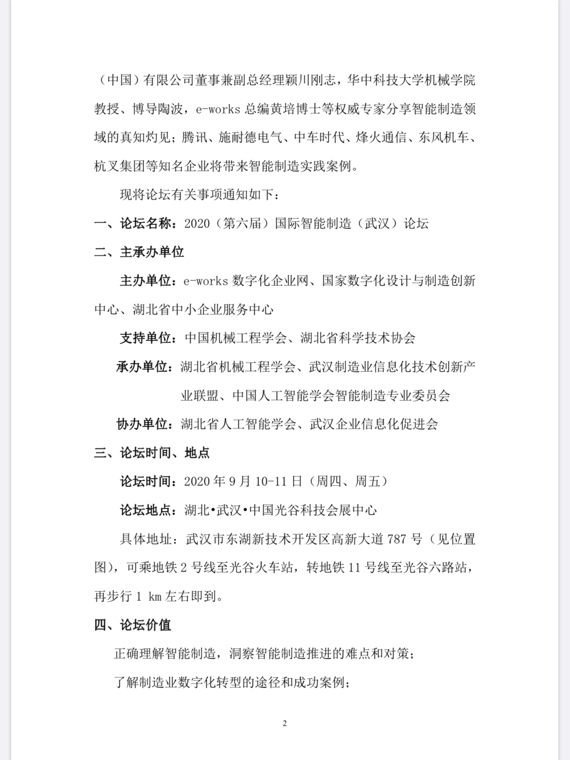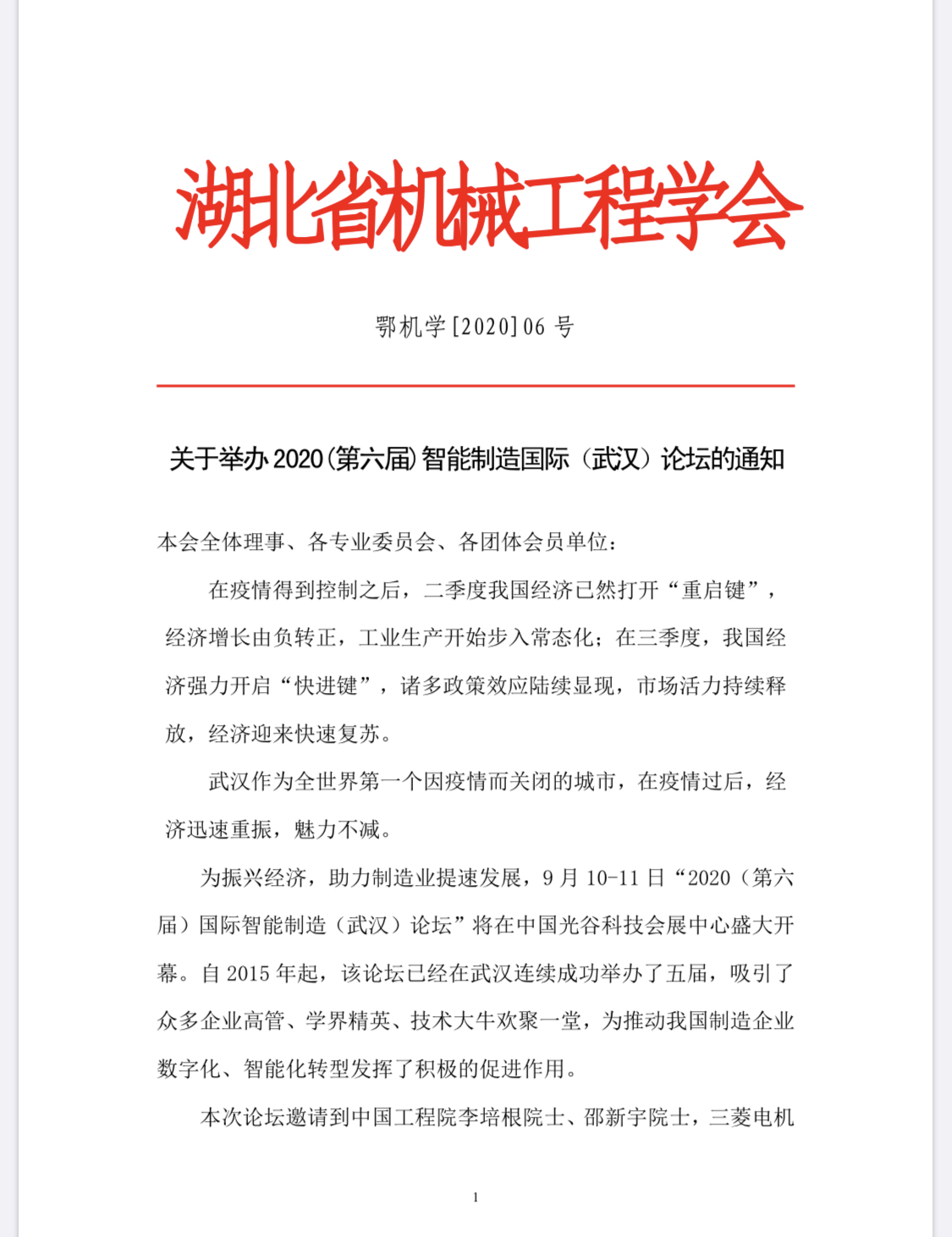 2020第六届智能制造国际(武汉)论坛定于9月10-11日在武汉光谷科技会展中心召开。