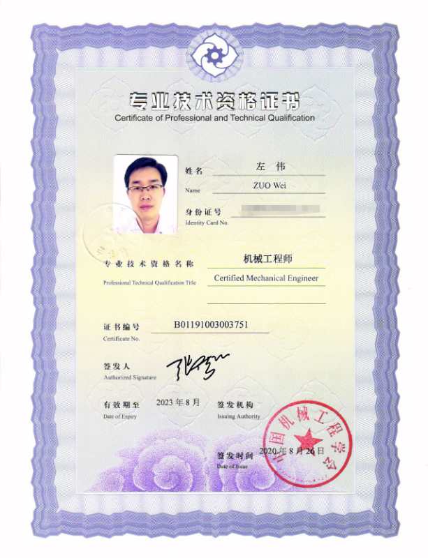 >> 我会6位考试合格人员获得总会颁发的“机械工程师专业资格证书”