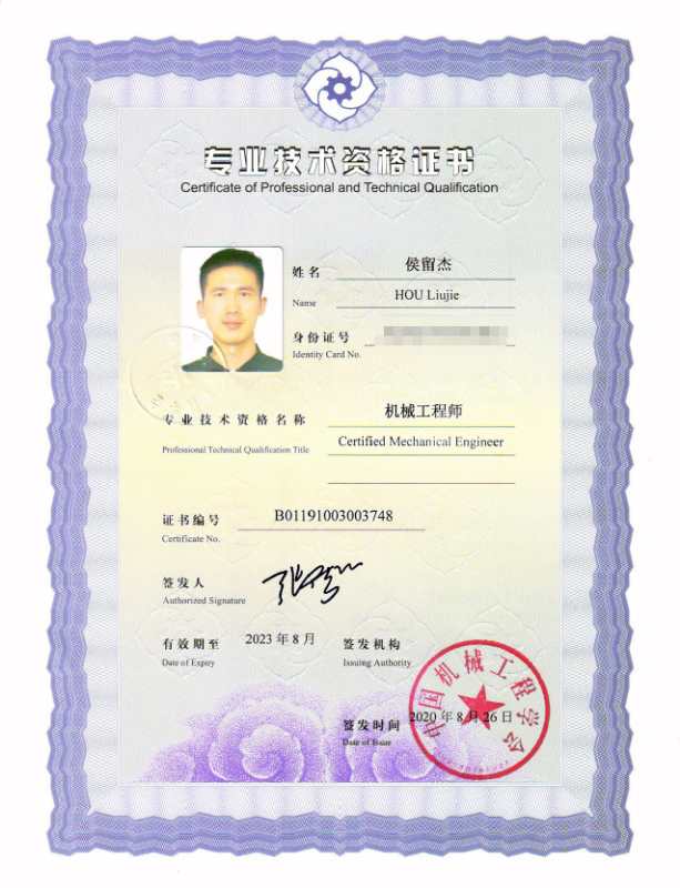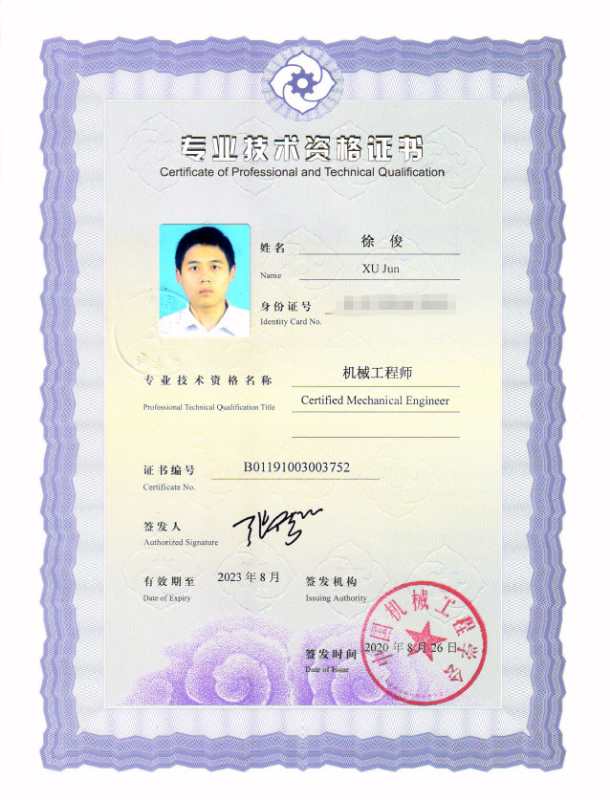 我会6位考试合格人员获得总会颁发的“机械工程师专业资格证书”