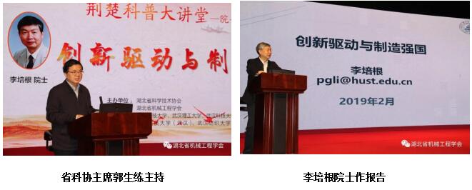 “荆楚科普大讲堂”是湖北省科协主办,旨在“推动湖北省创新发展战略的贯彻实施,奋力谱写新时代湖北高质量发展新篇章”的系列品牌科普活动。2019年“荆楚大讲堂——院士名家报告会”的主题定为“智能制造与建设制造强省”,委托我会承办。按省科协要求,我会邀请中国工程院院士、中国机械工程学会理事长李培根教授作了三场精彩科普报告: