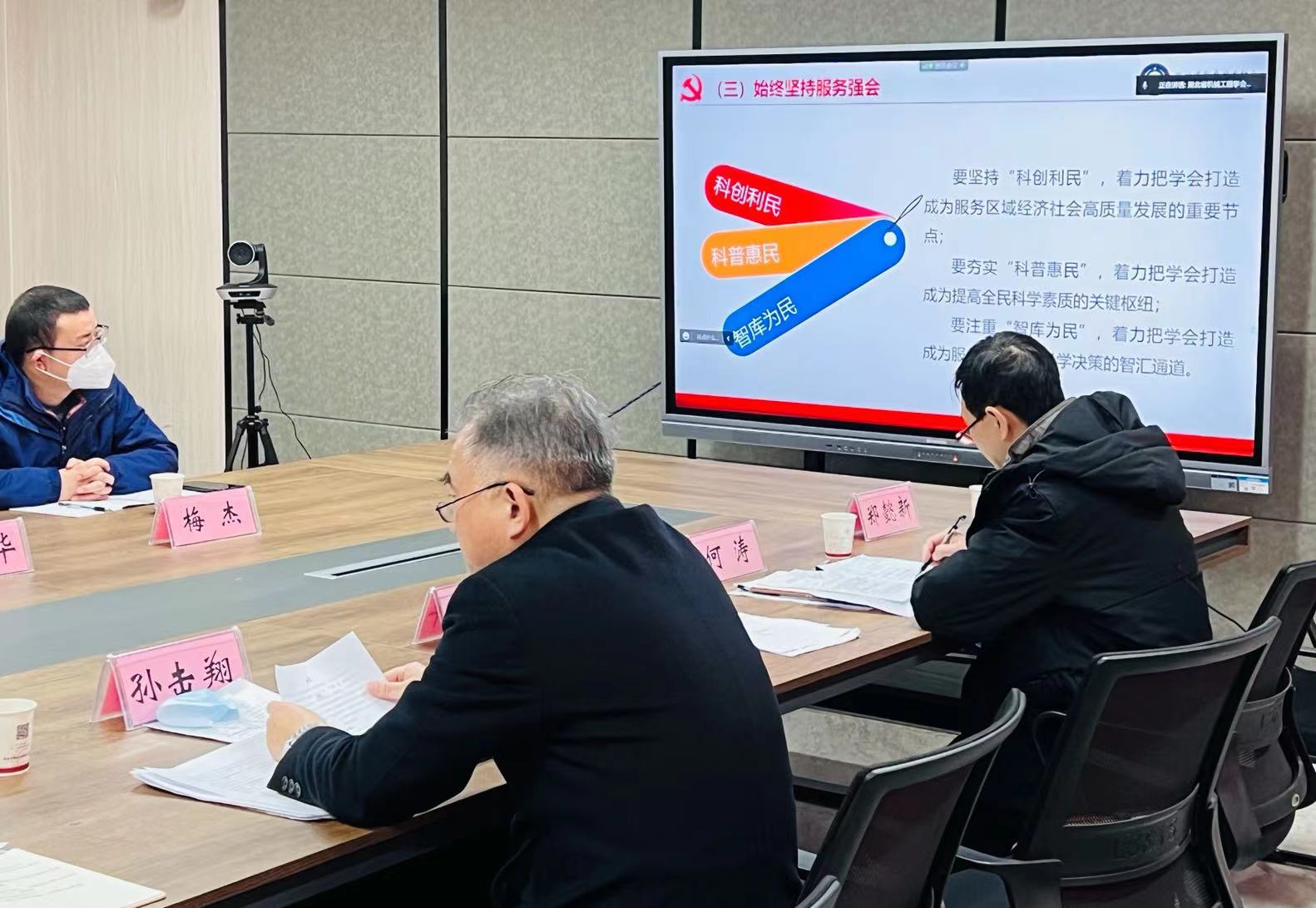 会议首先由孙击翔副主席讲授党课:《牢记初心使命 凝聚团结之力  为加快建设一流现代科技社团努力奋斗》。他从经济发展、社会稳定、全面脱贫、抗击疫情四个方面具体描述了党中央团结带领全国人民创造的伟大奇迹,让参会者深刻体会“两个确立”的极端重要性,也更加明白为什么党的二十大和二十届一中全会选举产生以习近平同志为核心的新一届中央领导集体,习近平同志继续当选中共中央总书记、中央军委主席,是二十大最为重要的政治成果。这也充分反映了习近平总书记在全党全军全国各族人民心中的崇高威望,反映了亿万人民紧跟党的核心、人民领袖开创更加美好未来的共同心声和坚定决心。