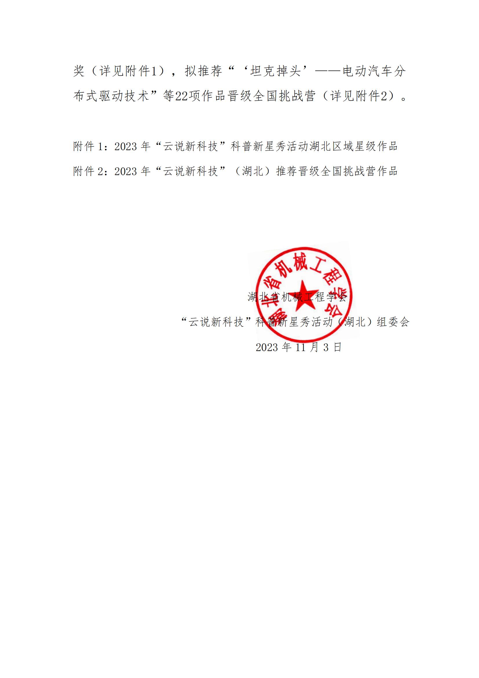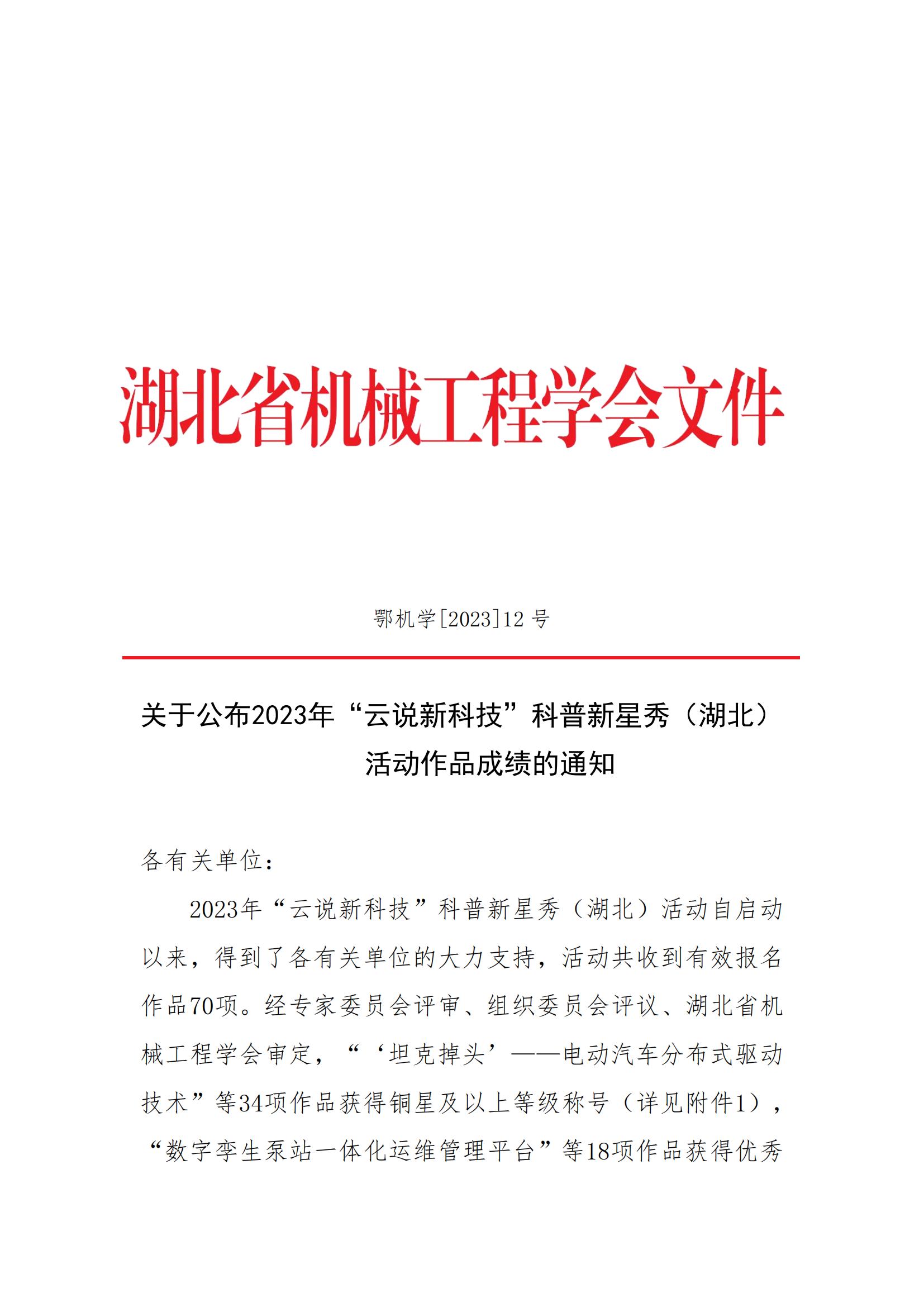 关于公布2023年“云说新科技”科普新星秀(湖北)活动作品成绩的通知