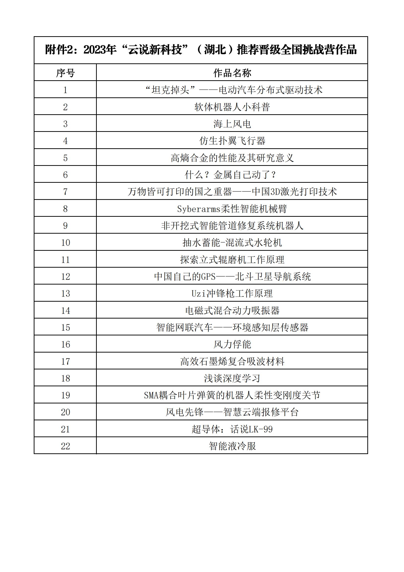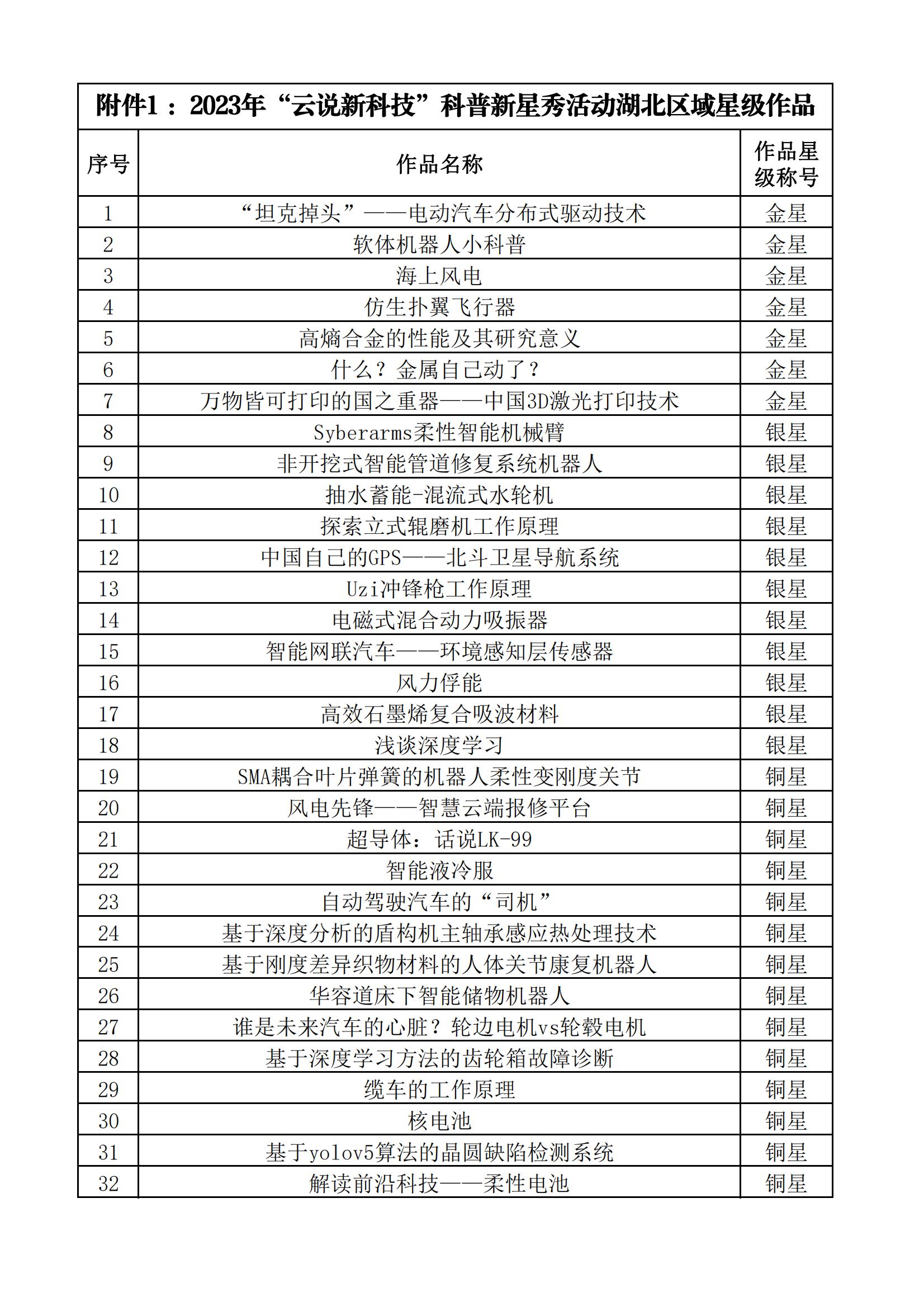 >> 关于公布2023年“云说新科技”科普新星秀(湖北)活动作品成绩的通知