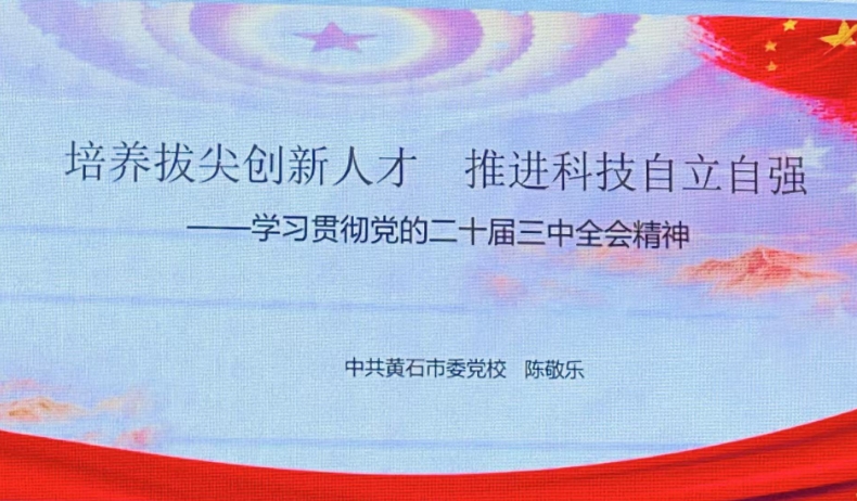 活动邀请了黄石市委党校党史党建教研室主任陈敬乐给党员同志们作《培养拔尖创新人才 推进科技自立自强——学习贯彻党的二十届三中全会精神》的党课。