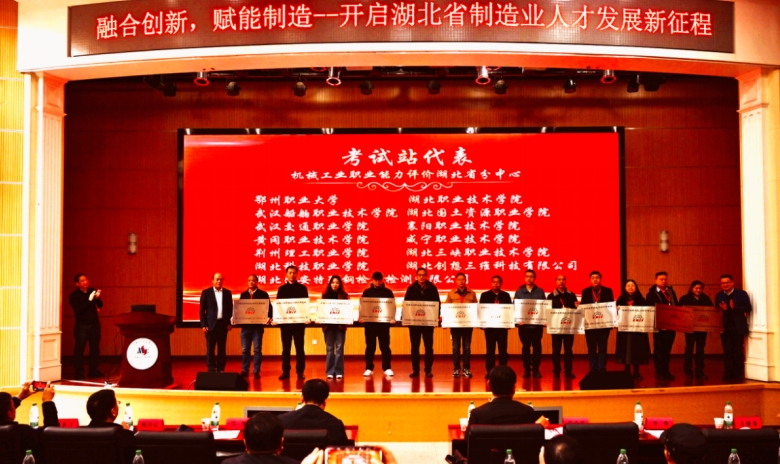 揭英诚主任宣读了“关于同意机械行业2024年第四批机构注册的批复”文件。由李奇会长与朱永平秘书长为湖北省首批申请的13家考试站进行授牌。