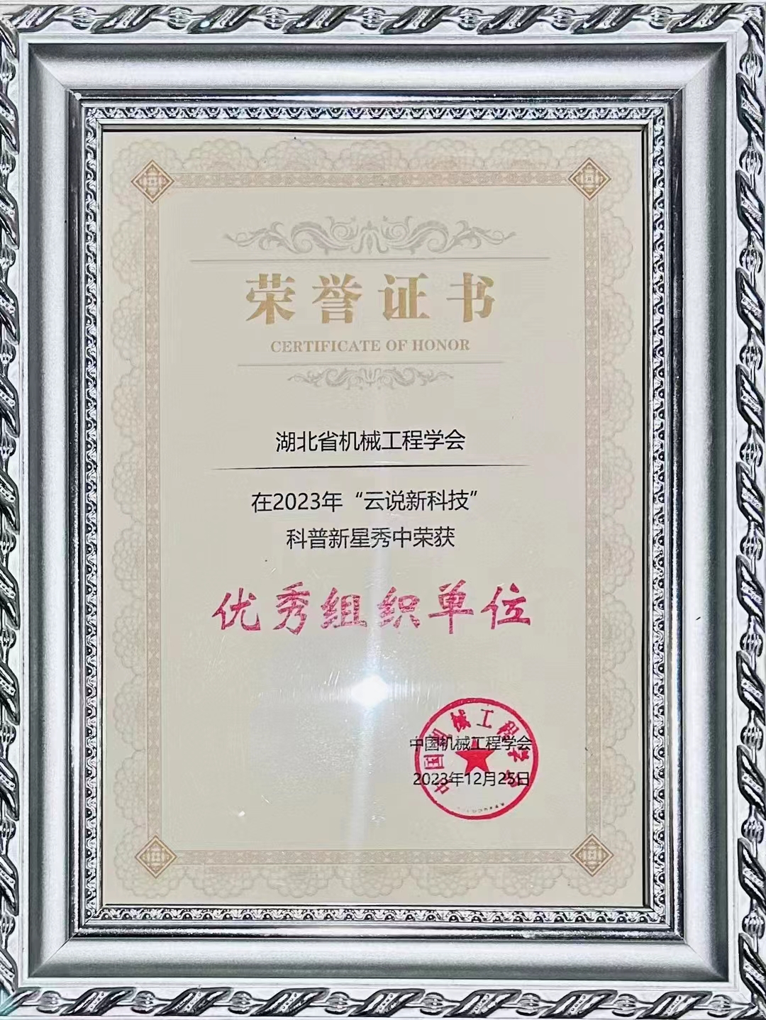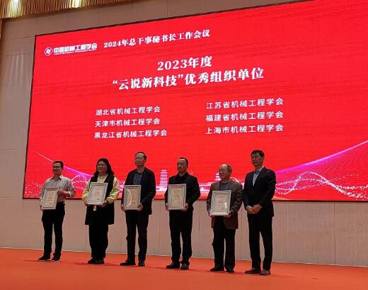 会议开幕式上举行了2023年业务工作表彰仪式。学会有关领导向获得2023年度优秀和先进专业分会、2023年度优秀和先进省区市学会、2023年度最具影响力学术活动、2023年度优秀标准工作组、2023年度“云说新科技”科普新星秀活动优秀组织单位的代表颁发了奖牌和证书。湖北省机械工程学会朱永平秘书长出席会议和受奖仪式。